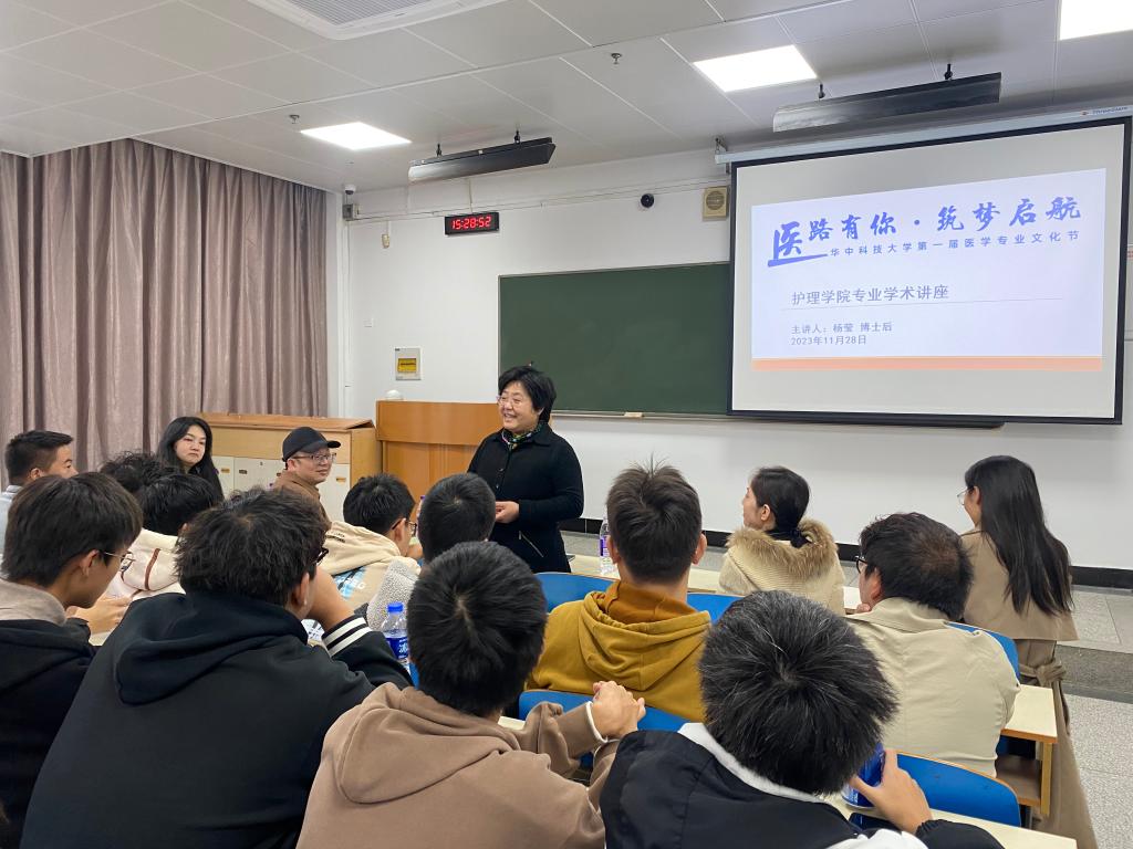金风送爽,梧桐纷飞。2023年11月28日,华中科技大学第一届医学专业文化节今年会jinnianhuicom学术讲座暨2023级新生专业思想教育在东十二楼310教室如期举行。主讲嘉宾为杨莹博士后,今年会jinnianhuicom党委书记徐晖、2023级教师班主任白雪、付文宁、院学生办主任陈介清、医科办公室洪玮辰等老师参加了此次活动,讲座由英护2301班解佳霖同学主持。