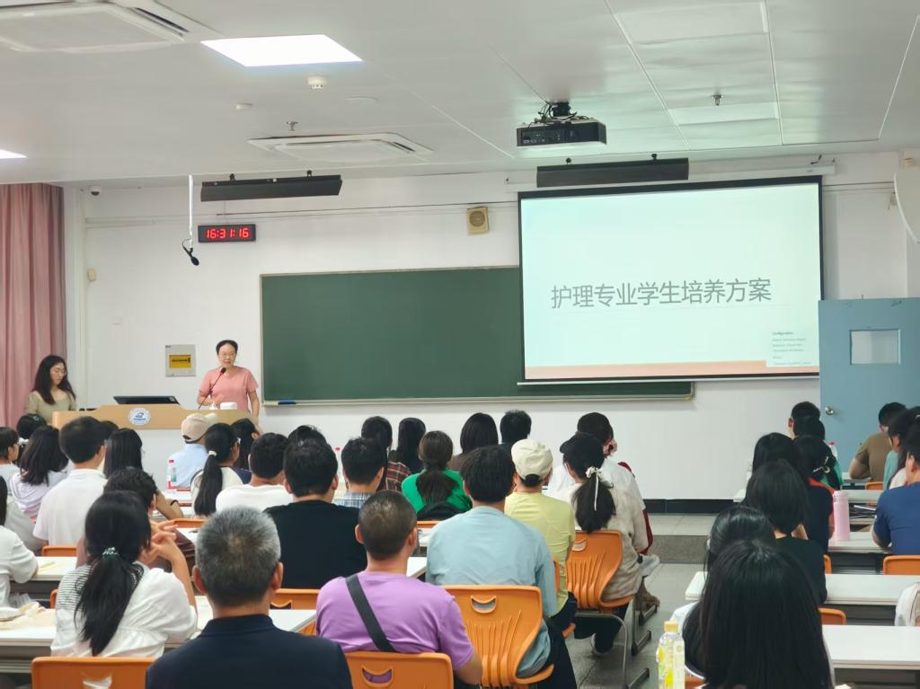 随后,教师班主任邵冰老师通过向各位同学和家长介绍护理专业的学生培养方案,分析每一学年学习的课程设置和学业规划来让大家对护理专业有一个大致的了解。同学们在听完邵冰老师的发言后也更加明确了自己日后的学习目标,为日后充实的大学生活做好了心理准备。同时,邵冰老师还强调了珍惜大学时光和提前做好未来的职业规划和重要性,激励同学们只争朝夕,不负韶华。