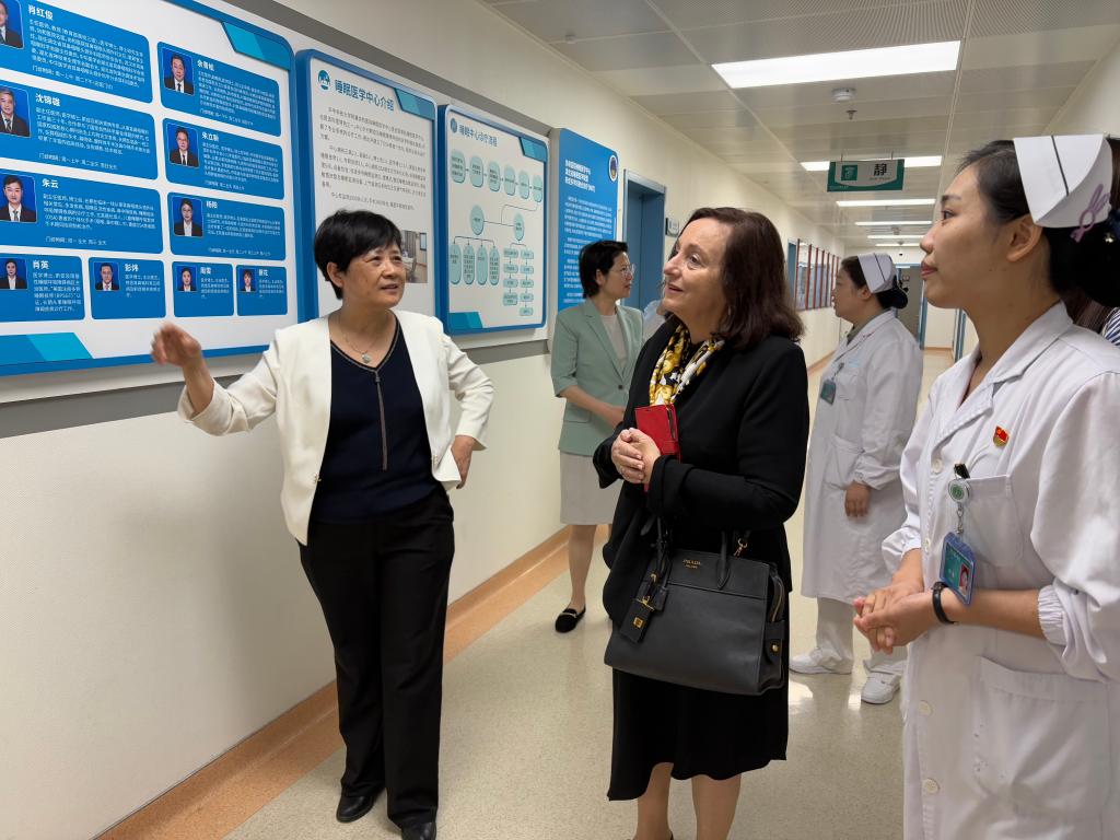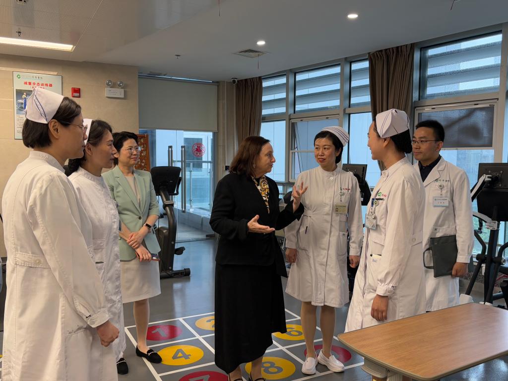 来访期间,Davidson教授还访问了附属协和医院和附属同济医院。在协和医院,Davidson教授参观了耳鼻喉科病房,并就人文护理、慢性病管理及人工智能在医疗领域的应用、患者全生命周期照护、女性健康管理等前沿议题展开交流。协和医院护理部主任刘义兰、副主任耿力、总护士长及科护士长代表等陪同参观。