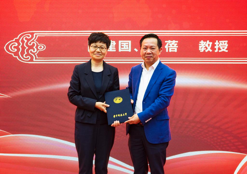 华中科技大学副校长、同济医学院党委书记、院长陈建国为吴蓓教授颁发客座教授聘书,并希望吴蓓教授为华中科技大学的发展作出积极贡献。