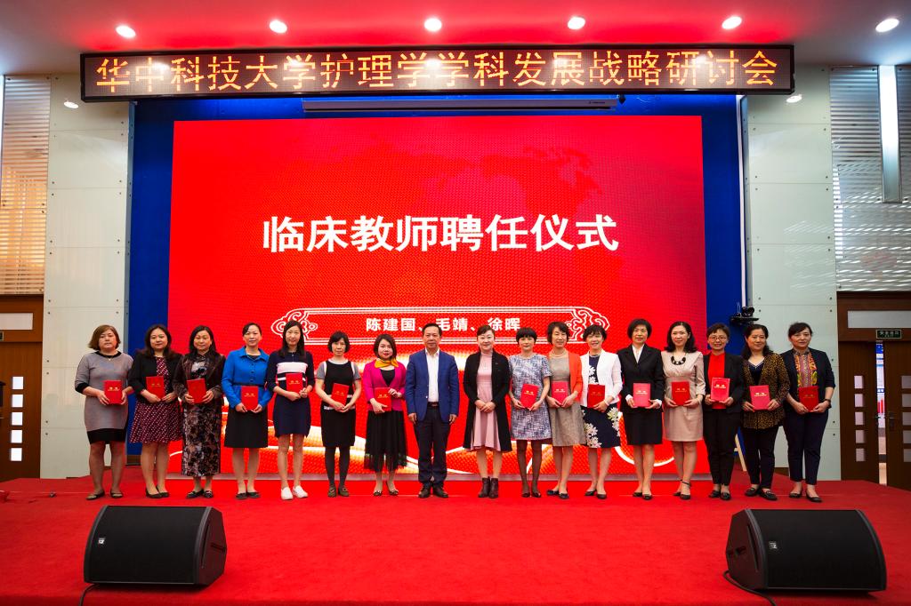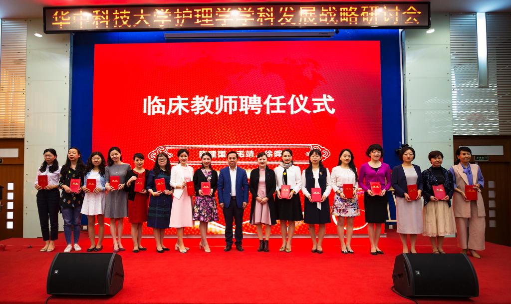 校学科与发展规划办公室主任赵仲宇,同济医学院相关负责人,10所附属医院相关负责人、护理部主任和护理人员,今年会jinnianhuicom师生代表近300人参加了授聘仪式。