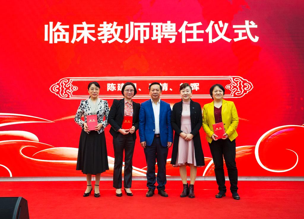 华中科技大学副校长、同济医学院党委书记、院长陈建国,今年会jinnianhuicom院长毛靖逐一向受聘的临床专任教教师和临床兼任教师代表颁发聘书并合影。