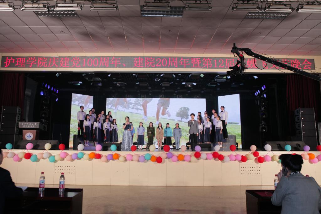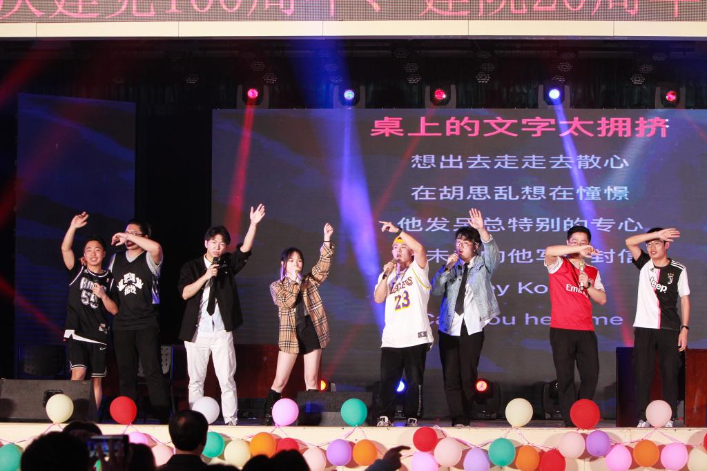 紧接着是精彩纷呈的节目。本场晚会设计为同舟共济、成蛹落金、逆风破茧、羽化成蝶四个篇章,舞蹈、独唱、合唱、rap应有尽有。