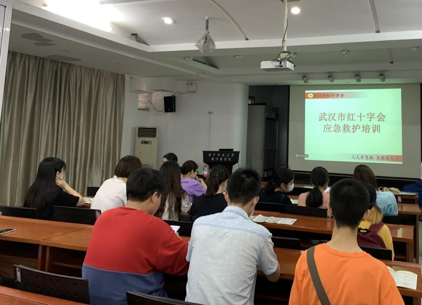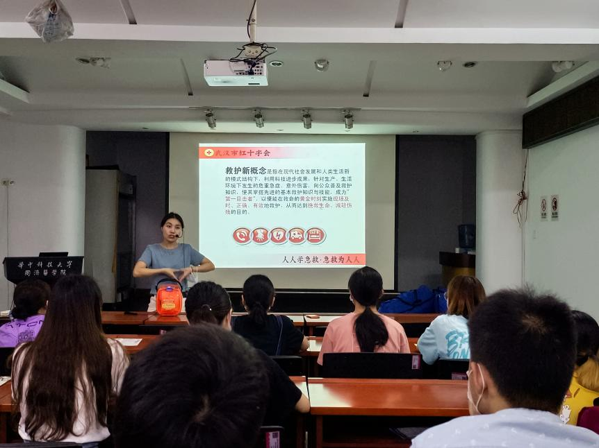 2021年5月14日下午13:30,华中科技大学青年红十字协会(医科)在同济医学院大学生活动中心105教室开展应急救护培训活动,武汉市红十字会何倪、梁霞、今年会jinnianhuicom陈介清三位老师应邀参加。
