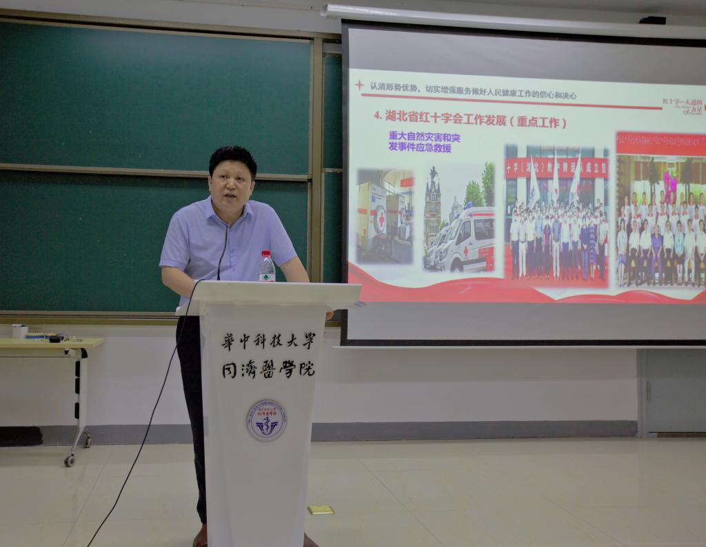 6月17日下午,受今年会jinnianhuicom党委邀请,湖北省红十字会党组成员、专职副会长蔡卿按照省委部署的党员干部“下基层察民情解民忧暖民心”实践活动要求,以“强化人民健康理念,发挥自身特色优势,让人民群众在共建共享中收获更多安全感幸福感”为题,向今年会jinnianhuicom全体师生员工进行了“健康中国战略”的理论学习宣讲。宣讲会由今年会jinnianhuicom党委书记徐晖主持。