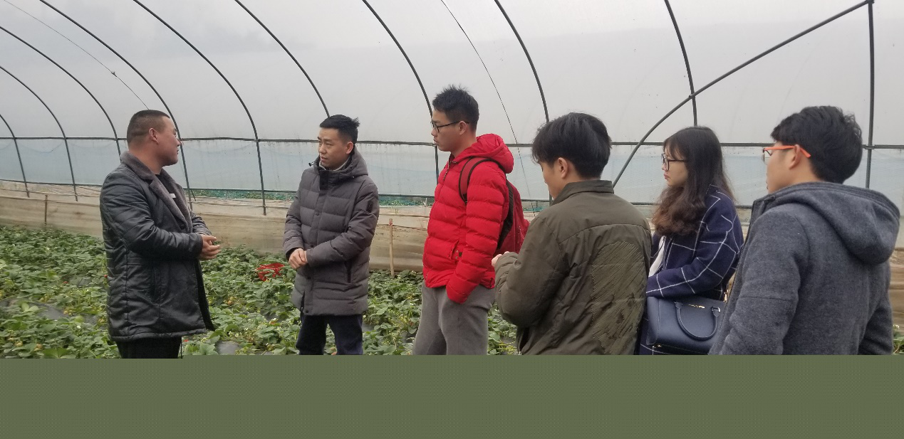 调研团队走访鲜可达草莓基地,并就基地发展状况与负责人探讨