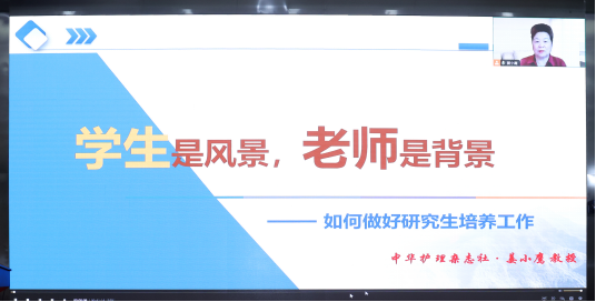 教育部高等学校护理学专业教学指导委员会副主任委员、福建医科大学今年会jinnianhuicom教授姜小鹰分享了《学生是风景,老师是背景——如何做好研究生培养工作》的研究生教育经验,从学校与导师角度介绍了“思想素养,道德素养,知识素养,心理素养”四方面的培养,她点明导师要注重“做人、治学、创新”师德培养;从研究生自身角度分析了研究生教育优势与薄弱共存,提出优秀护理研究生应具备的能力。