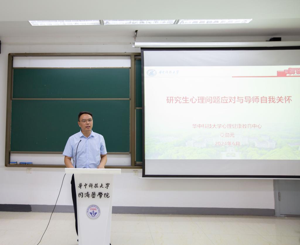 徐晖书记指出,近年来,随着社会竞争日益激烈,研究生承受的各种压力不断增加,学校也越来越重视研究生的心理健康问题。据此,本次培训班特别邀请华中科技大学心理健康教育中心章劲元主任开设专题讲座,讲授研究生心理问题应对与导师的自我关怀。