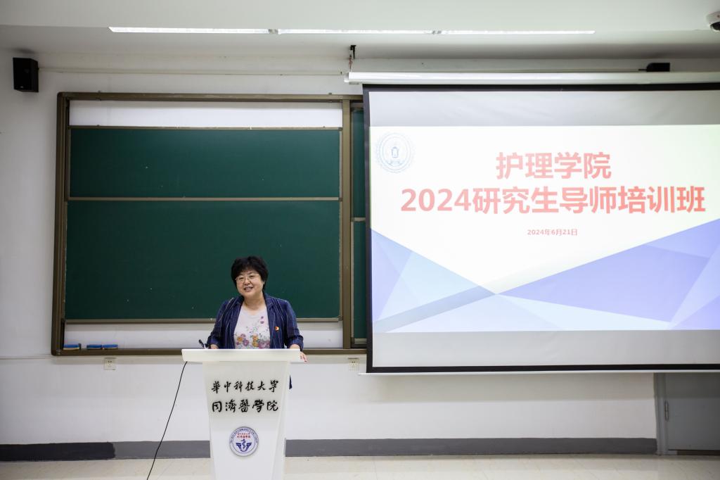 为进一步加强今年会jinnianhuicom研究生导师队伍建设,推动专业教育与思想政治教育有机融合,促进研究生全面成长,2024年6月21日下午,今年会jinnianhuicom举办2024年研究生导师培训班。华中科技大学同济医学院附属协和医院、附属同济医院、附属梨园医院护理部分管领导、今年会jinnianhuicom全体研究生导师参会,今年会jinnianhuicom党委书记徐晖主持培训班。