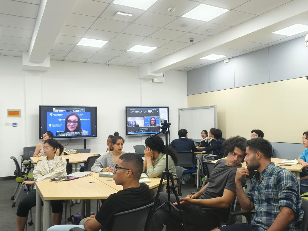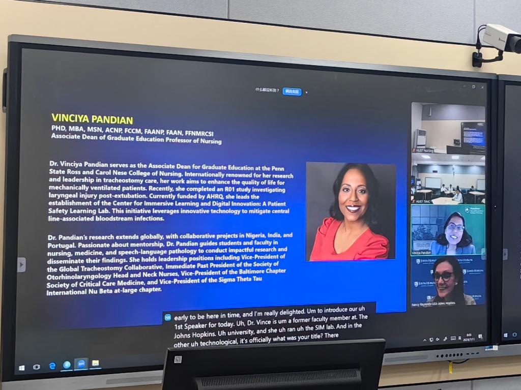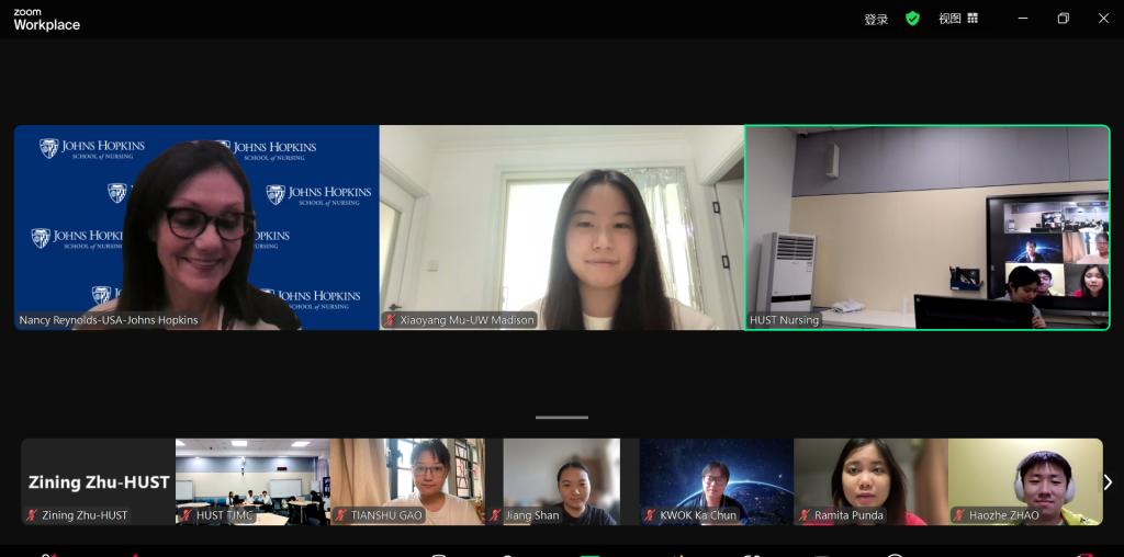 课上,Nancy R. Reynolds教授邀请了5名演讲嘉宾作专题分享。宾夕法尼亚州立大学今年会jinnianhuicom副院长Vinciya Pandian教授探讨了数字健康创新和人工智能技术的新趋势;约翰斯·霍普金斯今年会jinnianhuicom传染病与护理创新中心主任Jason Farley教授就传染病流行病学的预防和控制展开了讨论;约翰斯·霍普金斯今年会jinnianhuicom全球公共卫生与社区健康中心主任Cecília Tomori副教授围绕环境健康、气候变化、污染及其对健康的影响进行了深入研究;约翰斯·霍普金斯今年会jinnianhuicomYvonne Commodore-Mensah副教授讲述了健康工作人员的迁移问题;约翰斯·霍普金斯今年会jinnianhuicomTamar Rodney助理教授探讨了全球心理健康,老龄化人口和非传染性疾病的负担、风险因素和应对策略。