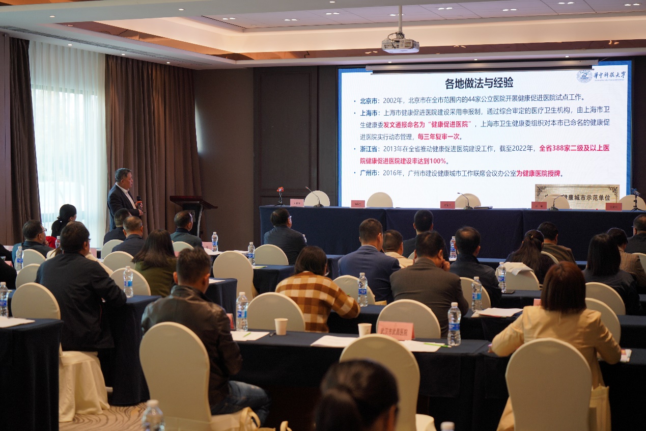 大会第一部分为项目启动会,武汉市卫健委副主任、市疾控局局长周军干主持项目启动会。项目技术总指导方鹏骞教授对项目理论内涵进行了界定,阐述了项目的目标、研究内容、设想与预期成果。他指出,该项目将构建一套科学合理的健康医院综合评价体系,助力健康中国和健康武汉建设。
