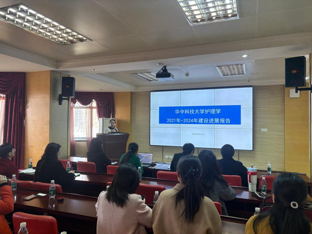 院学科建设办公室主任李节作2021-2024年华中科技大学护理学科建设进展报告。李节以详实的数据、图表等资料对比分析了我校护理学科与国内同类高校护理学科的现状,从人才培养、师资资源、科学研究、学科声誉等多个维度深入解读了各项具体指标和指数,明确了学科未来需要加强的方向与路径。