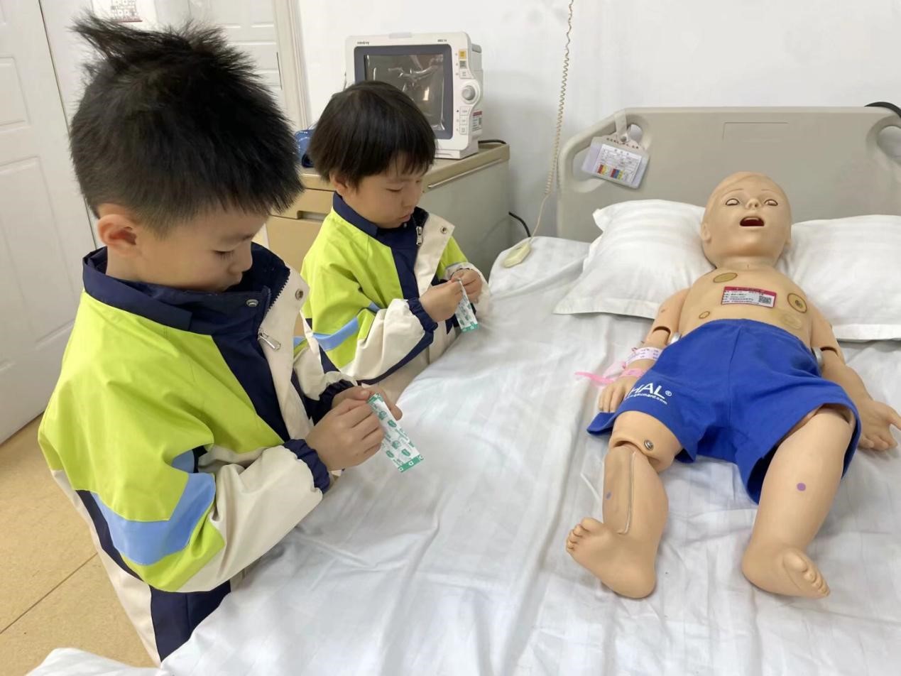 在基础护理学实验室,由本科生团队带领幼儿体验无菌操作流程,观摩护理实训课堂,感受严谨的医学态度。幼儿穿戴迷你护士装备,学习消毒、包扎等基础技能,体验护理工作的神圣使命。孩子们在角色扮演中展现出的专注态度,印证了生命关怀教育的有效性。